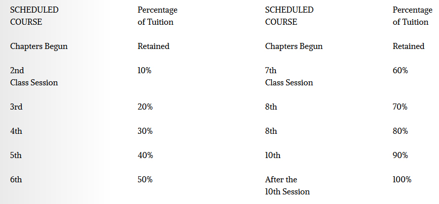 IF A STUDENT FAILS TO ENTER THE COURSE OR WITHDRAWS PRIOR TO ITS COMPLETION, THE REFUND POLICY IS AS FOLLOWS.